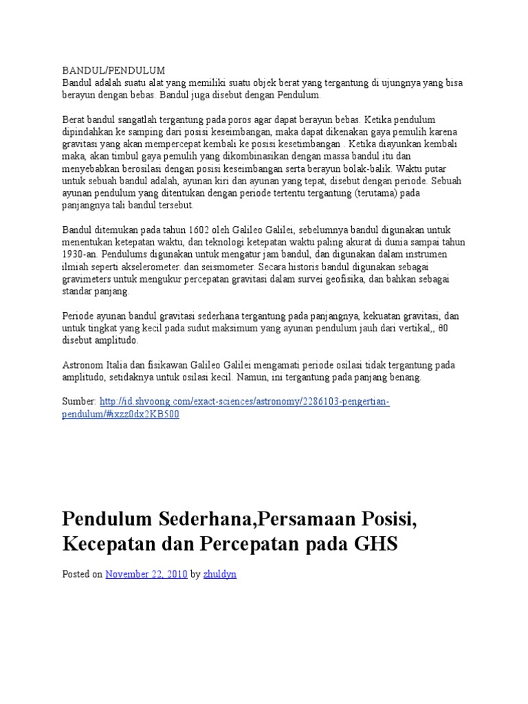 Besarnya Frekuensi Suatu Ayunan Bandul Sederhana Bergantung Pada - Gerak Harmonik Pada Bandul 1 Doc Document : We did not find results for:. Besarnya frekuensi suatu ayunan bandul sederhana bergantung pada. Check spelling or type a new query. We did not find results for: Maybe you would like to learn more about one of these?